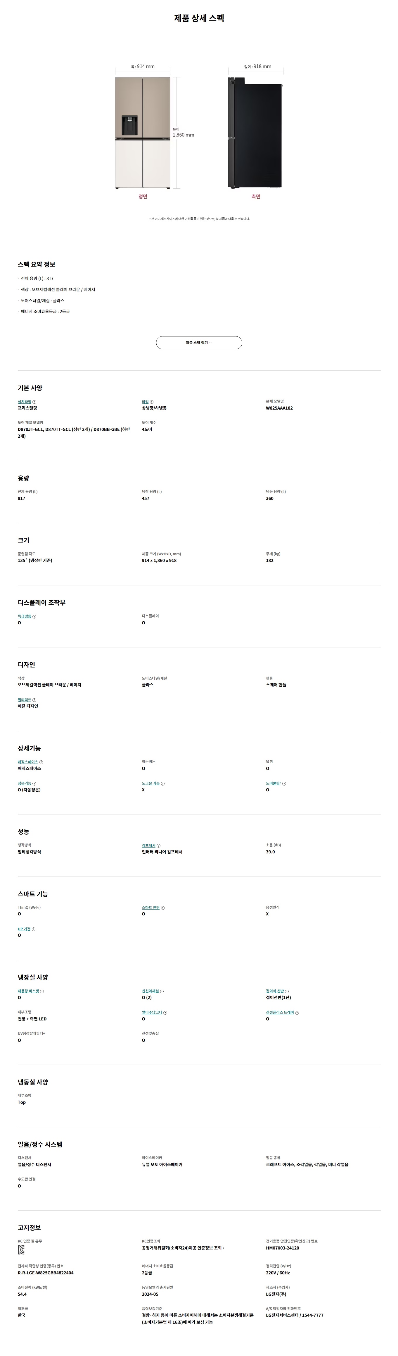 전체 용량 (L) : 817