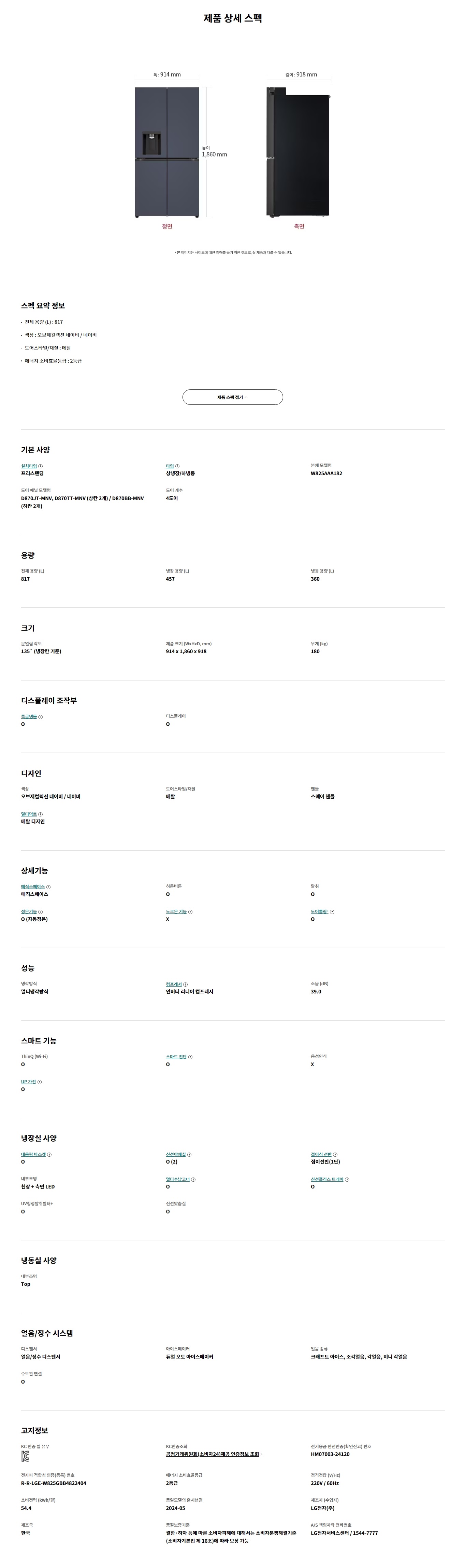 LG 디오스 오브제컬렉션 STEM 얼음정수 냉장고 (매직스페이스) 817L 2등급 W825MNN182S