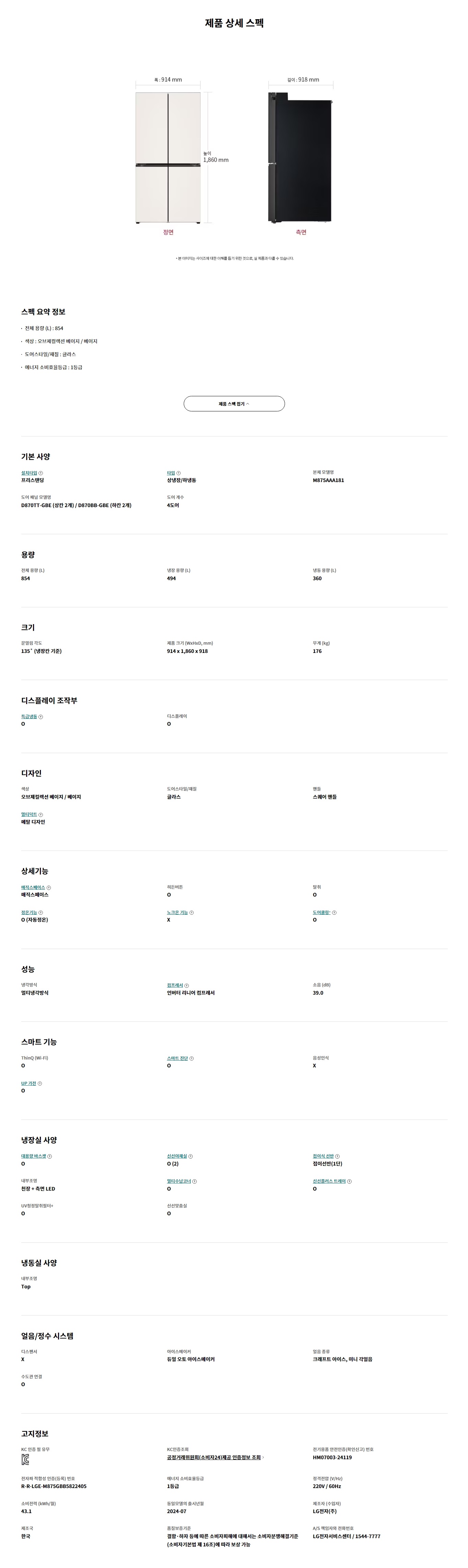 LG 디오스 오브제컬렉션 STEM 베이직 냉장고 (매직스페이스) 854L 1등급 M875GBB181