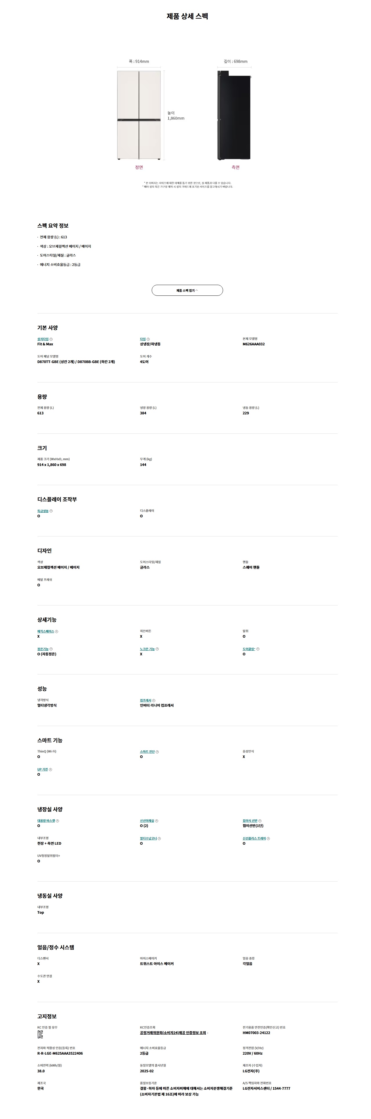 LG 디오스 오브제컬렉션 냉장고 Fit & Max 613L 2등급 M626GBB032S