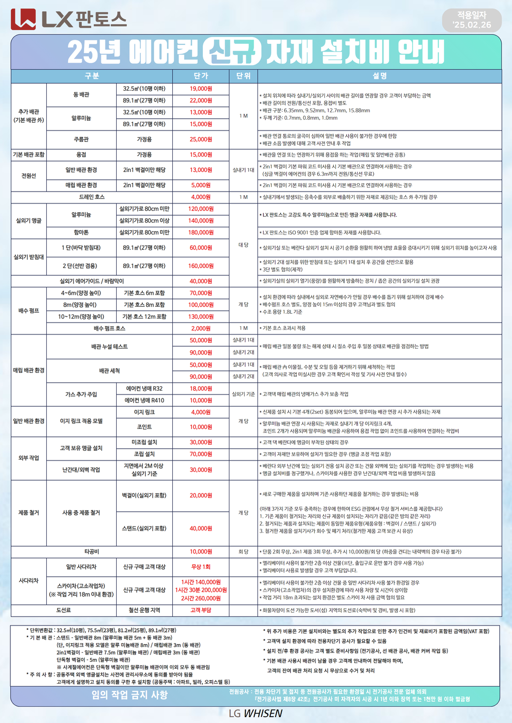 현장에 따라 추가설치비가 발생할 수 있습니다. (상세설명 참조)