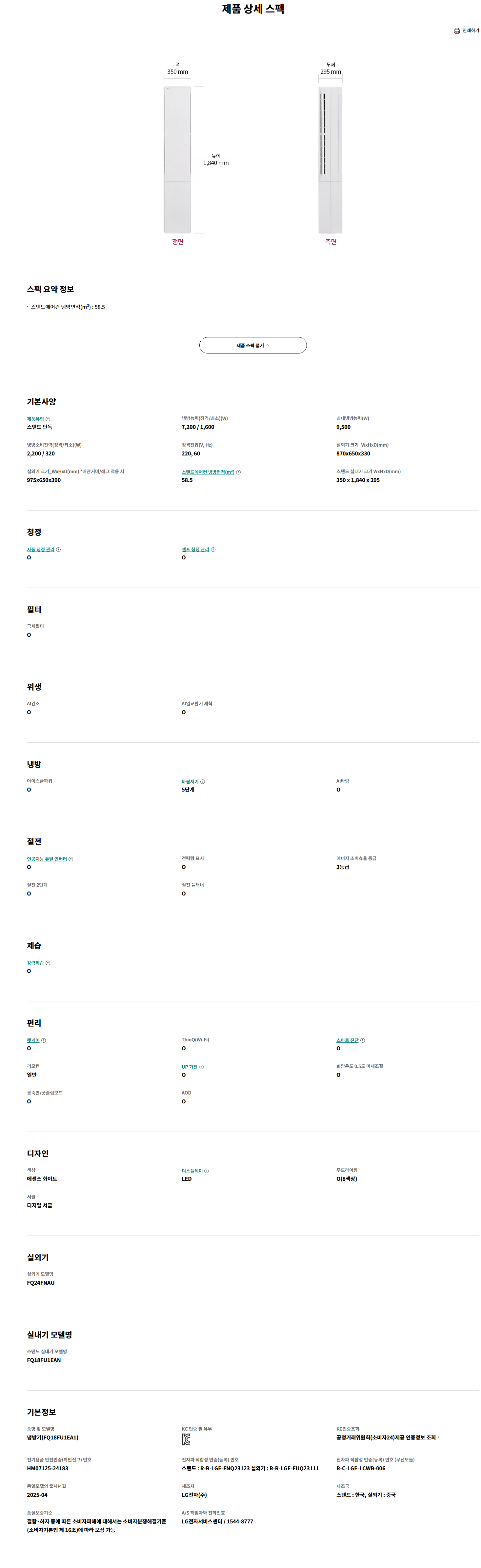 • 스탠드에어컨 냉방면적(m²) : 58.5