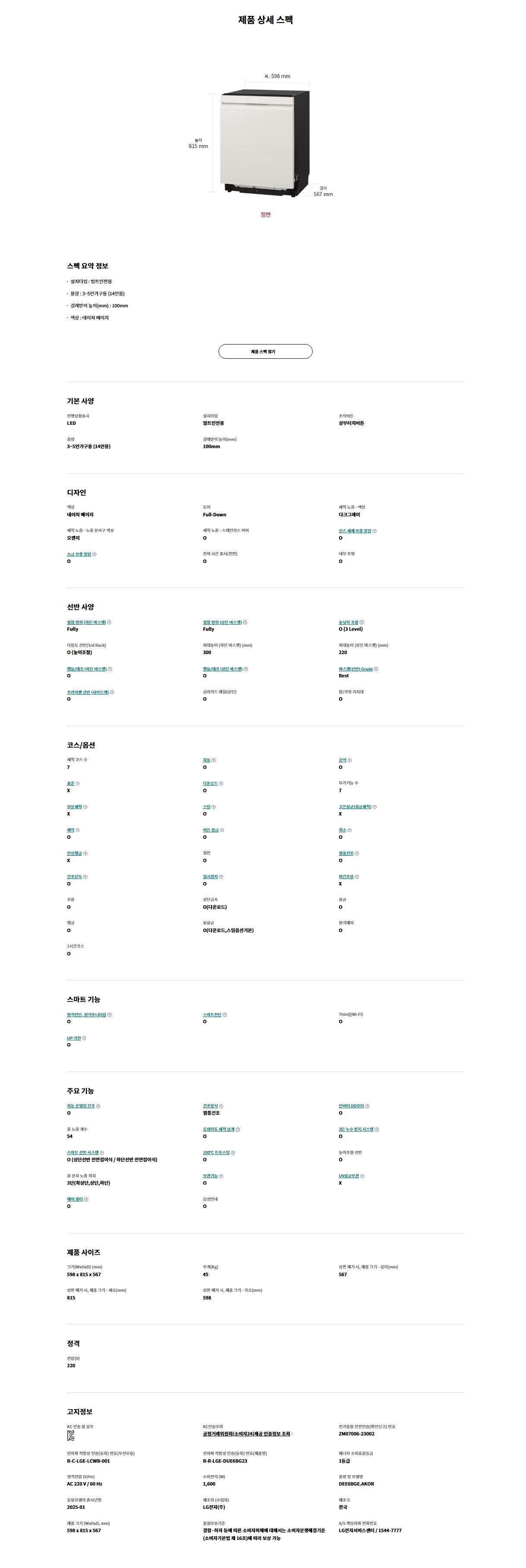 LG 디오스 오브제컬렉션 14인용 식기세척기 1등급 열풍+스팀 DEE6BGE