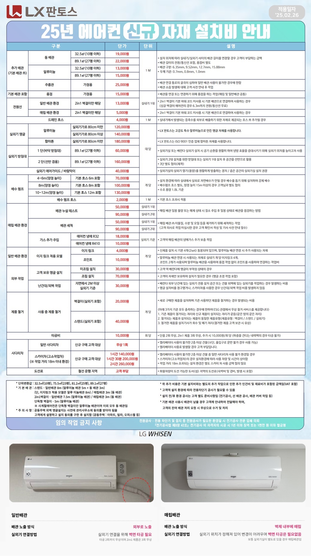 현장에 따라 추가설치비가 발생할 수 있습니다. (상세설명 참조)