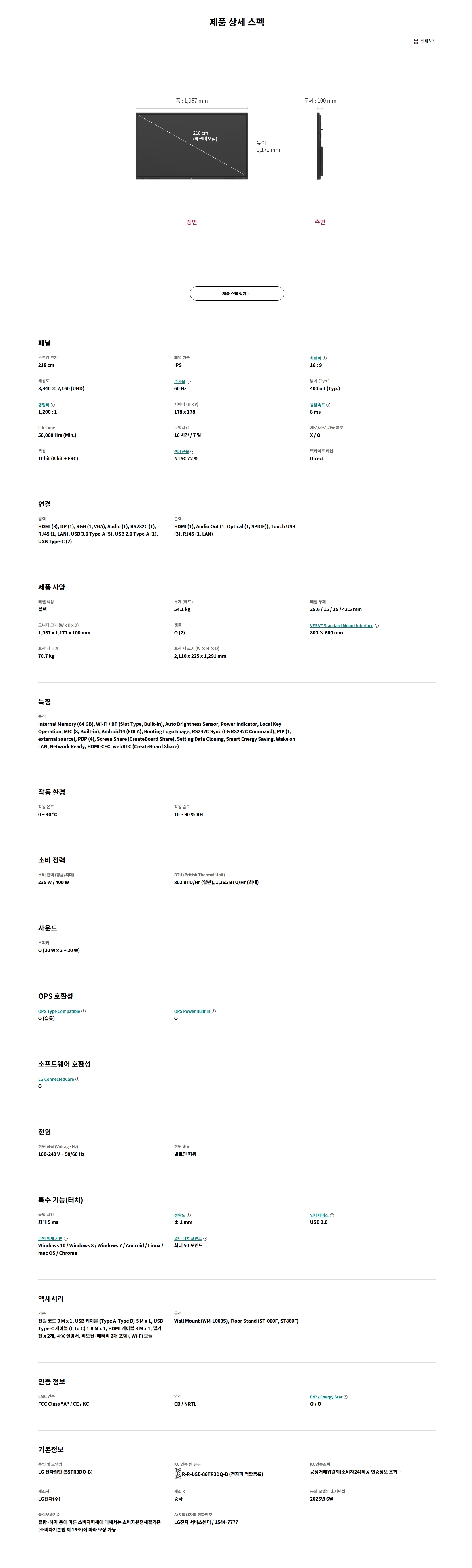 공식 벽걸이 설치는 75인치 이상은 콘크리트 벽이어야 합니다. 그 이외 상황은 설치 불가합니다.