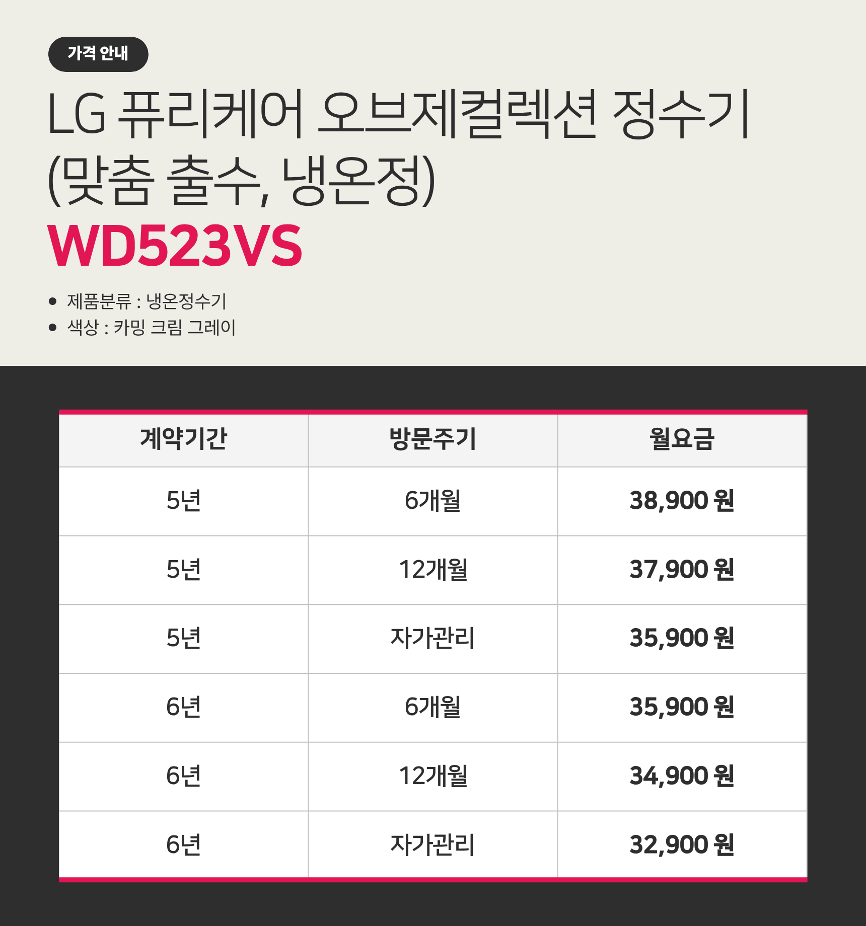 LG 퓨리케어 오브제컬렉션 정수기(맞춤 출수, 냉온정) 카밍 크림 그레이 WD523VS