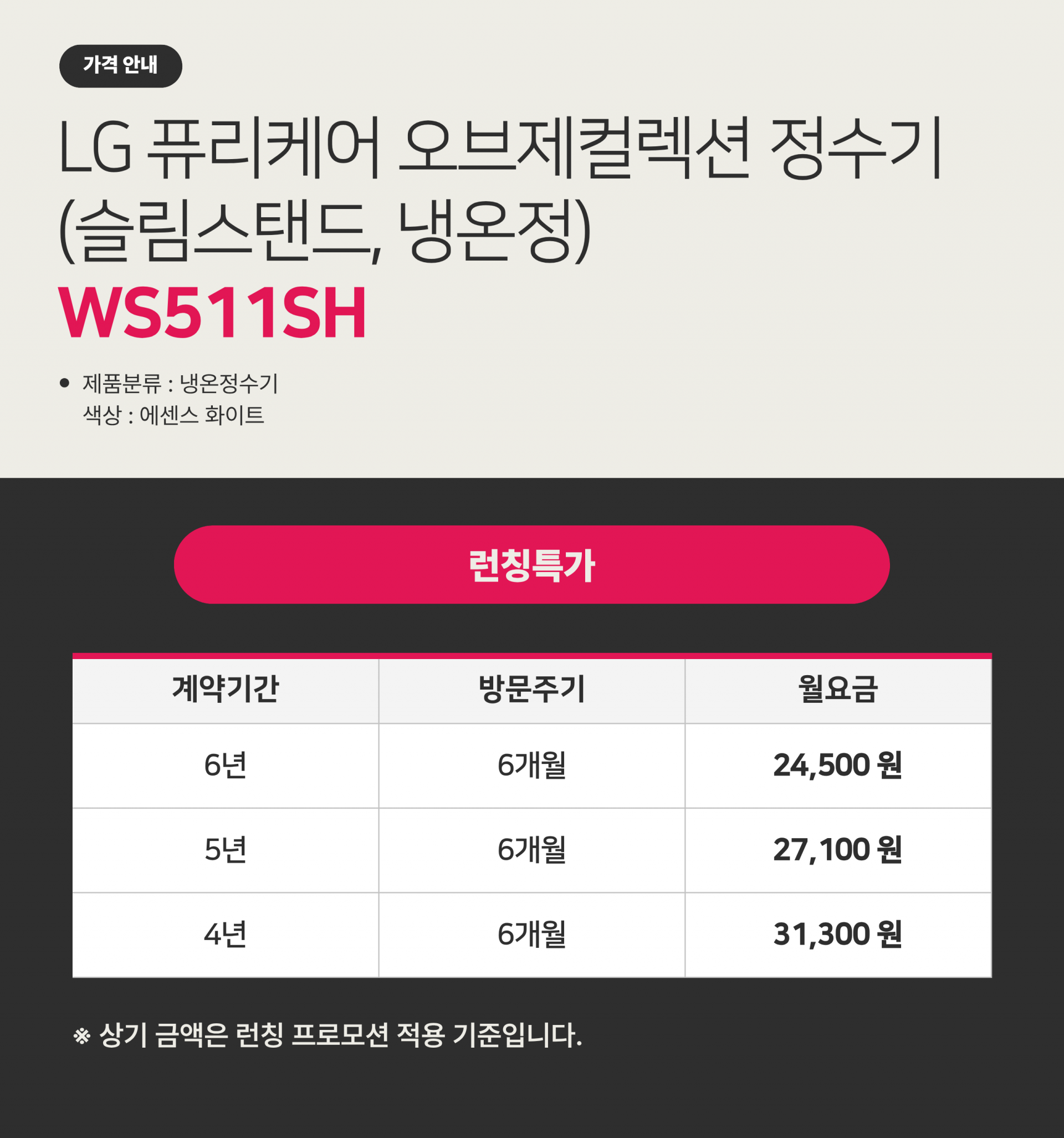 LG 퓨리케어 오브제컬렉션 정수기(슬림스탠드, 냉온정) 에센스 화이트 WS511SH