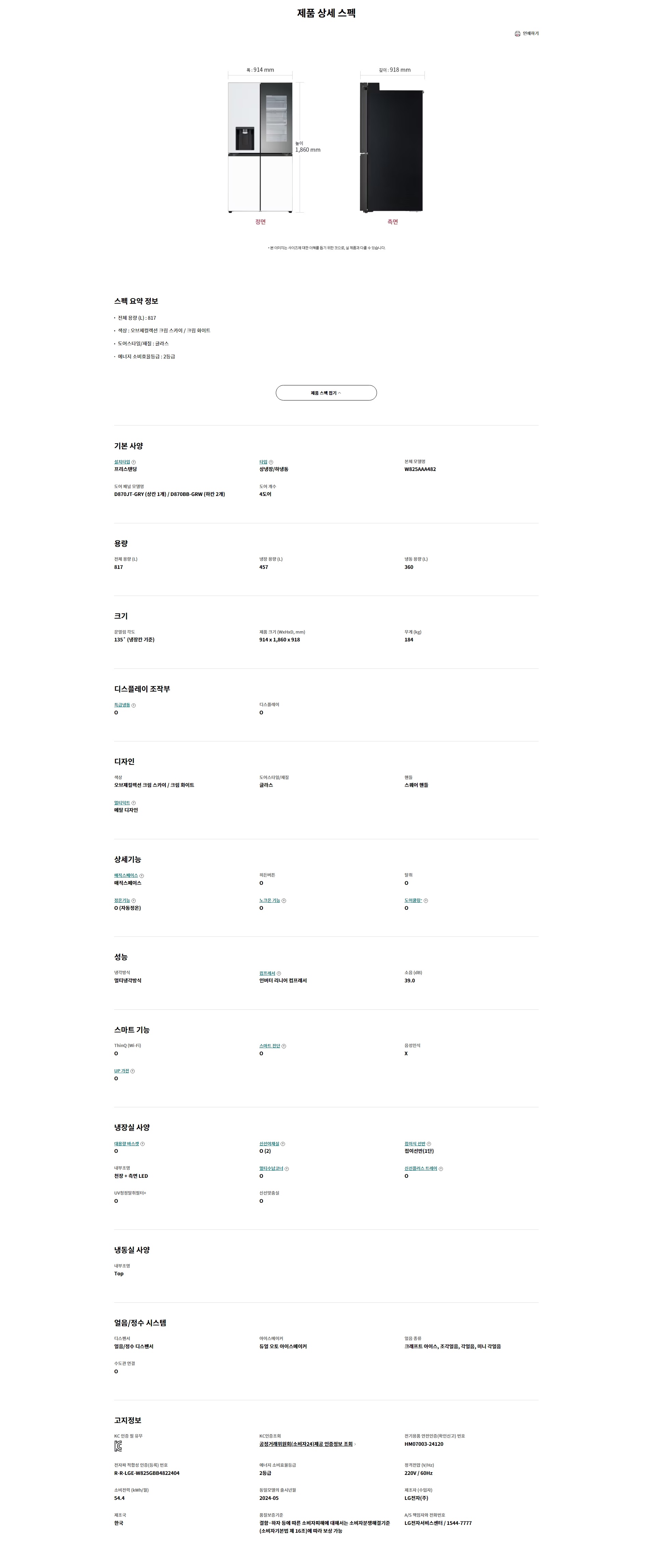 LG 디오스 오브제컬렉션 STEM 얼음정수 냉장고 (노크온 매직스페이스) 817L 2등급 W825GYW482S
