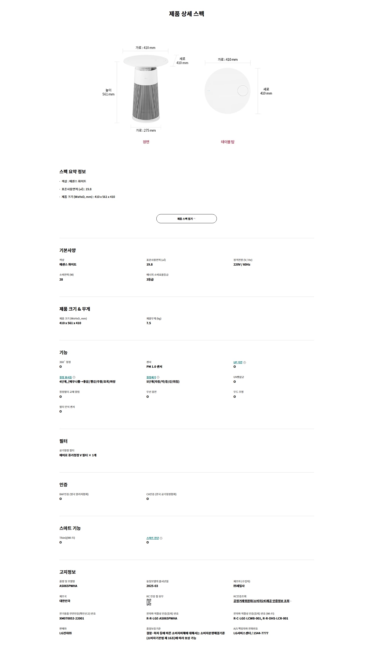 제품 크기 (WxHxD, mm) : 410 x 561 x 410