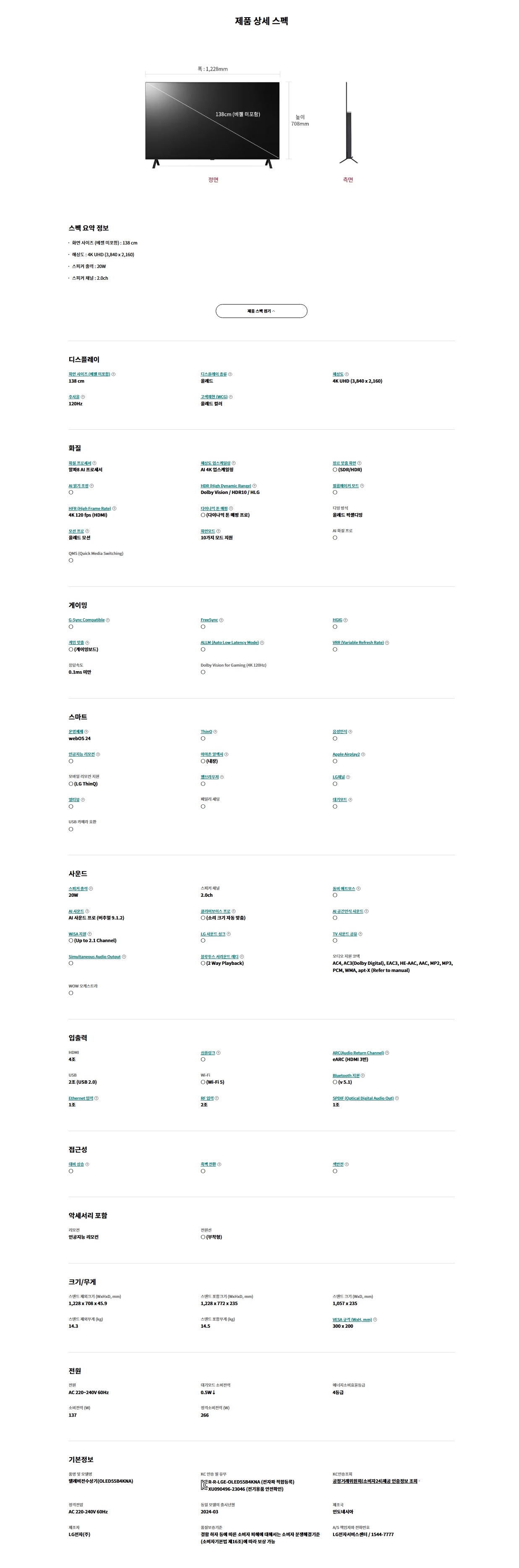 LG 올레드 TV B4 55인치 티비 OLED55B4KNA